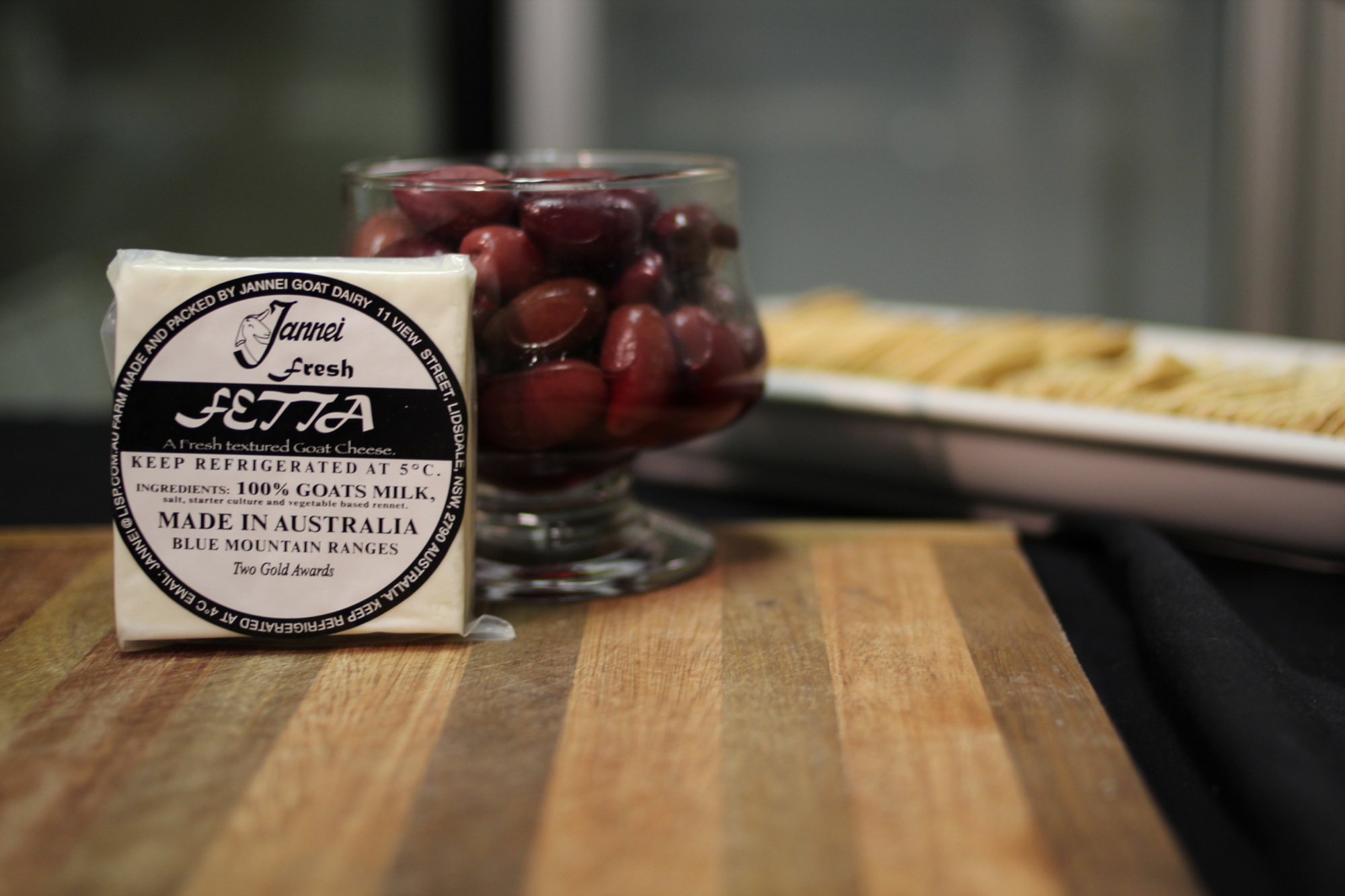 Jannei Fetta is made with 100% goat milk. It is a firm but soft cheese and slice-able. It has the sweet taste of summer milk even though brined in 10% salt like a traditional Fetta but Goat’s milk fetta is naturally white not bleached like other fetta can be.